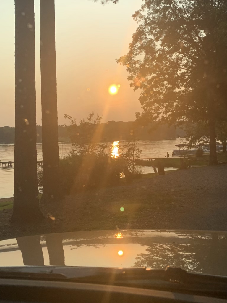 We wanted to park the rig and go enjoy the sunset on the lake, BUT instead, we had all sorts of trouble, had to change campsites and worked way past sunset getting ourselves set up. So this is a quick shot driving by.