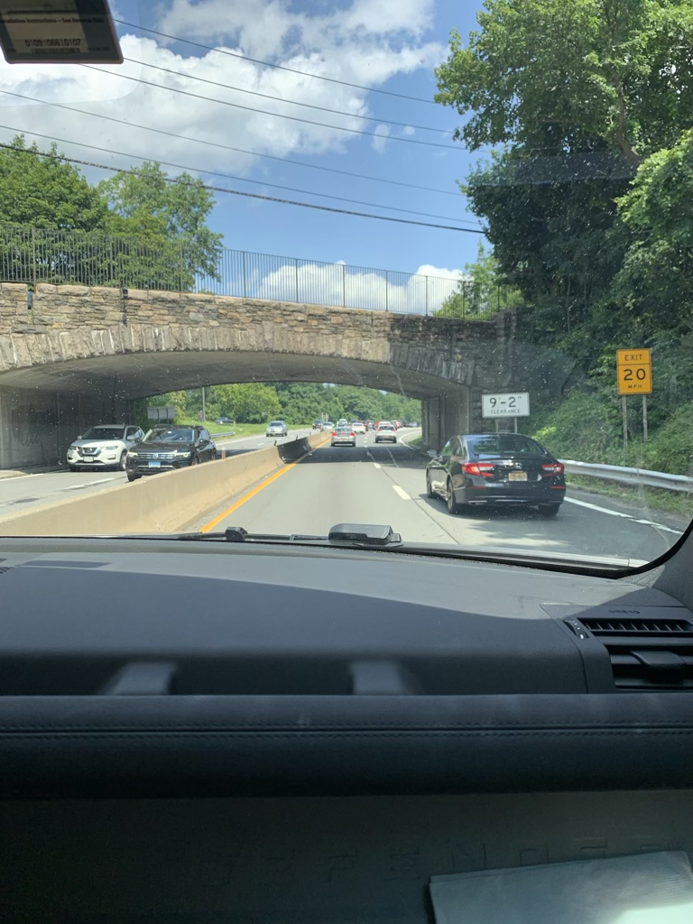 The clearance to that bridge was 9 foot 2 inches and our trailer height is 10 foot 5 inches! We were a little freaked out, the bridges got lower and lower in New York near Yonkers. Turns out, if you go under the center of the bridge, the clearance is higher, that is just the side clearance. Whew!