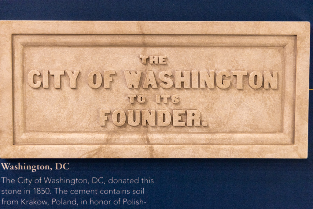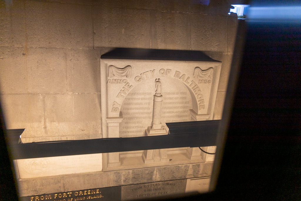 On the elevator ride down it slows and the glass clears to show the numerous commemorative stones donated to the Monument from states, cities and people.