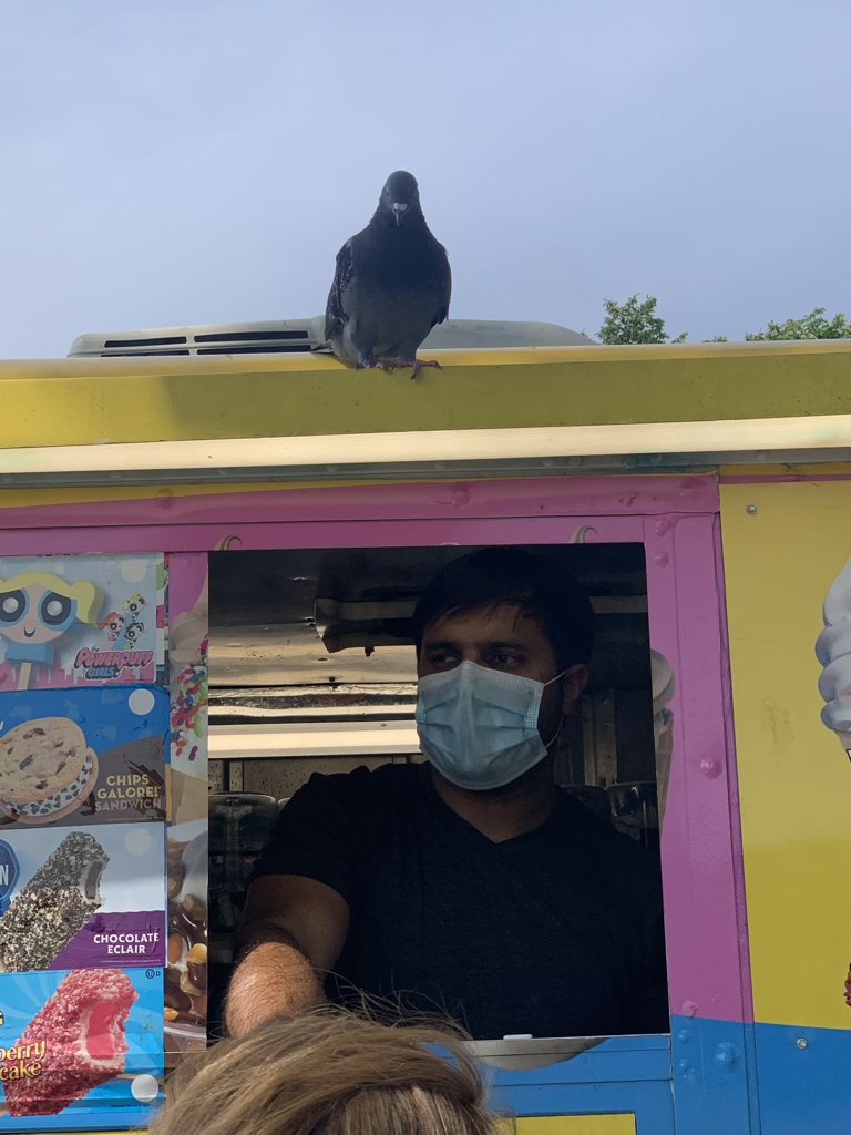 The Washington Monument pigeon who attempts to get ice cream from each customer to no avail.