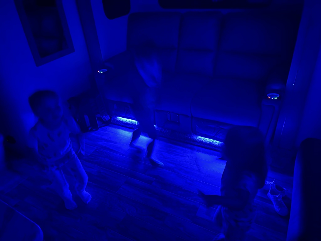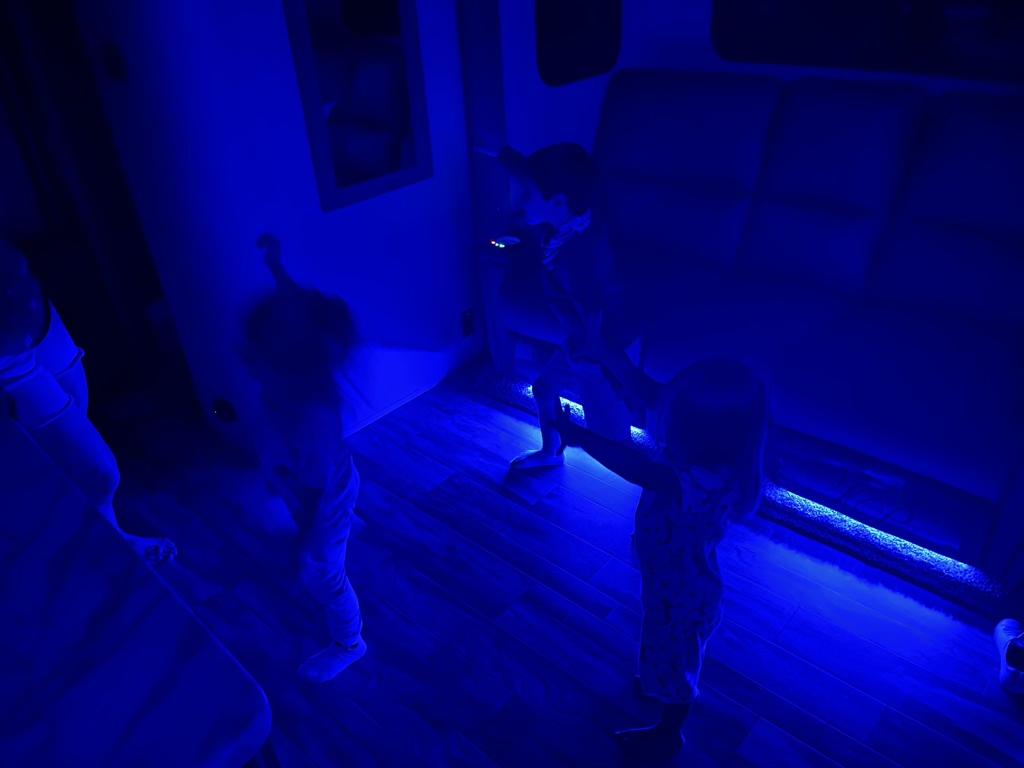 That tabletop campfire is pretty cool! As long as no paper towels are nearby. 😆 Blue lights make every dance party better!