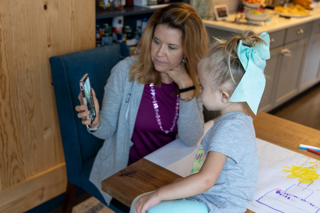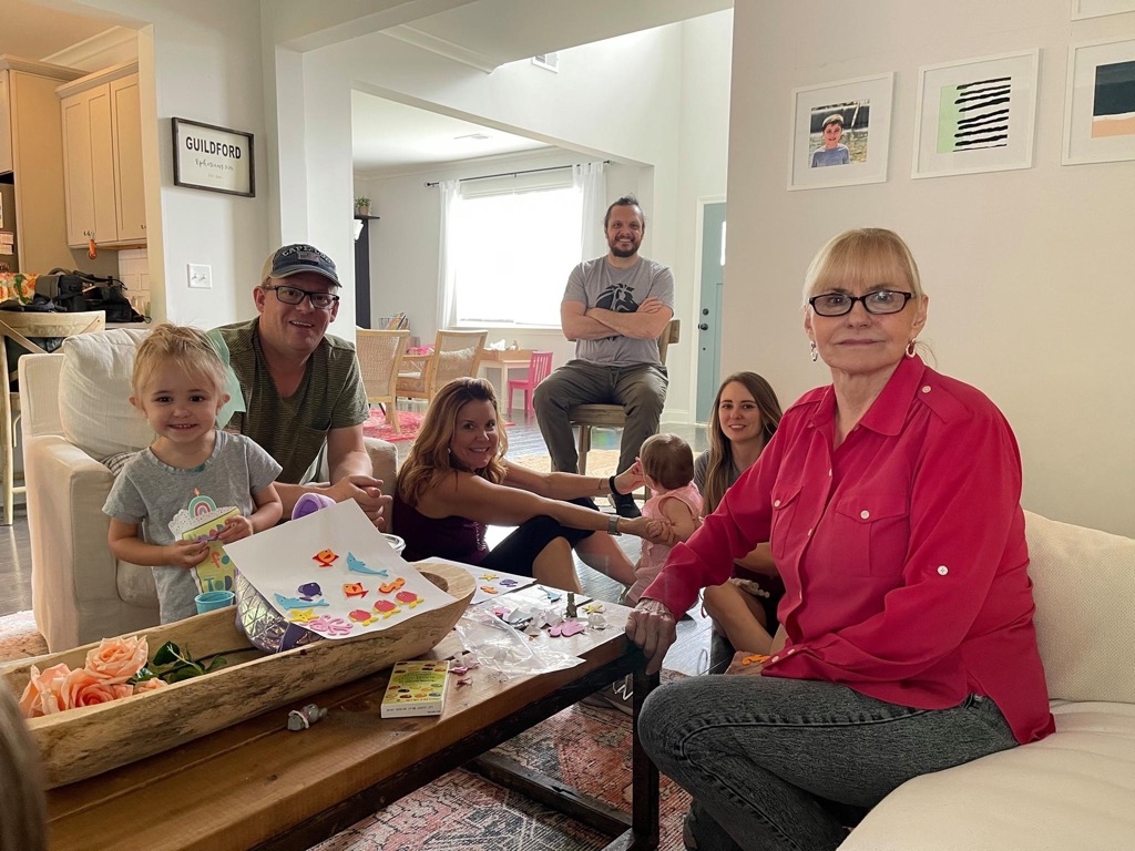 Kristi’s mom, Marilyn, and little sister, Brittani, and Brittani’s husband Blake in the background and Jerry and Emilia