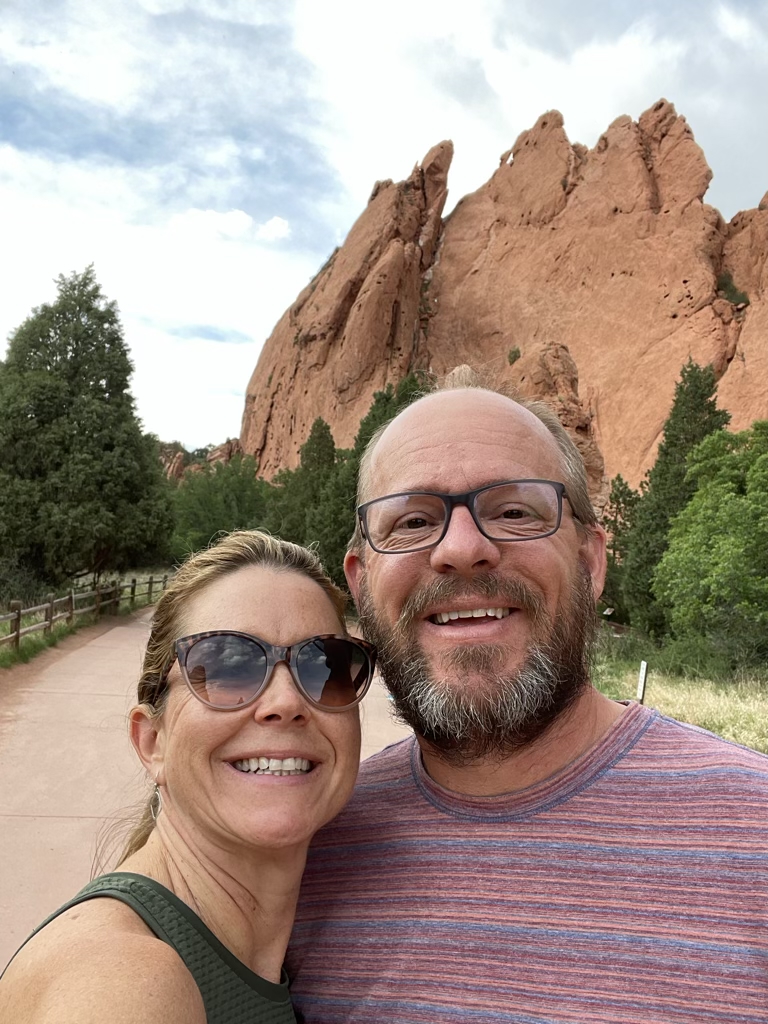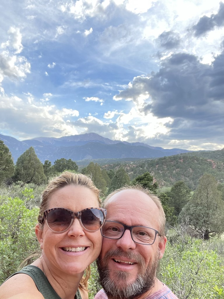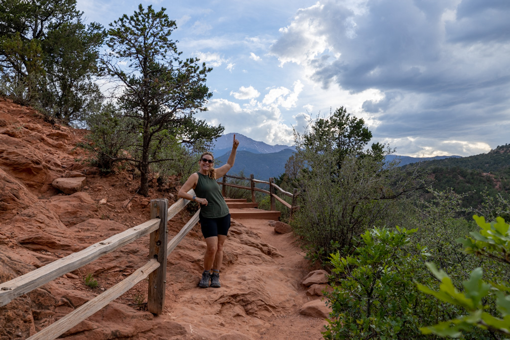 This doesn’t really count for our trip because we’ve been here before – 12 years ago with the kids. And this 50/50 trip is supposed to be about new places and new experiences. But, come on, we were staying 2 miles away! So, we made a little evening trip to hike around and get pics. And, we had heard that Pikes Peak was the backdrop to Garden of the Gods so I had to check that out for myself because I hadn’t remembered that.